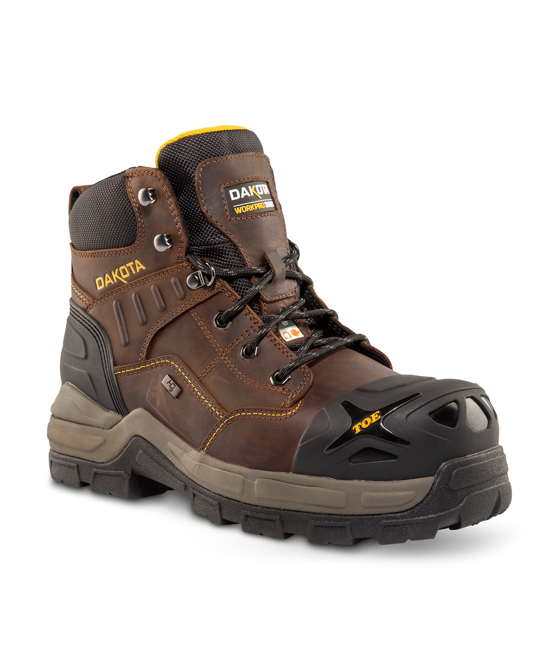 These 6" Dakota rugged leather boots are built to last with waterproof leather uppers and TPU abrasion-resistant toes. To keep your feet dry, they have an HD3 Waterproof Membrane, 400 grams of insulation and Dri-Tech linings that breathe while moving moisture away from the skin. With our X-Toe technology, have moved the steel toe to the outside of the leather away from the foot for added comfort. This boot also uses IceFX technology on the outsole for traction on ice. The ultimate boot for the guy working outside in the fall and winter. ASTM-2413-11; MI/75 C/75 Approved.